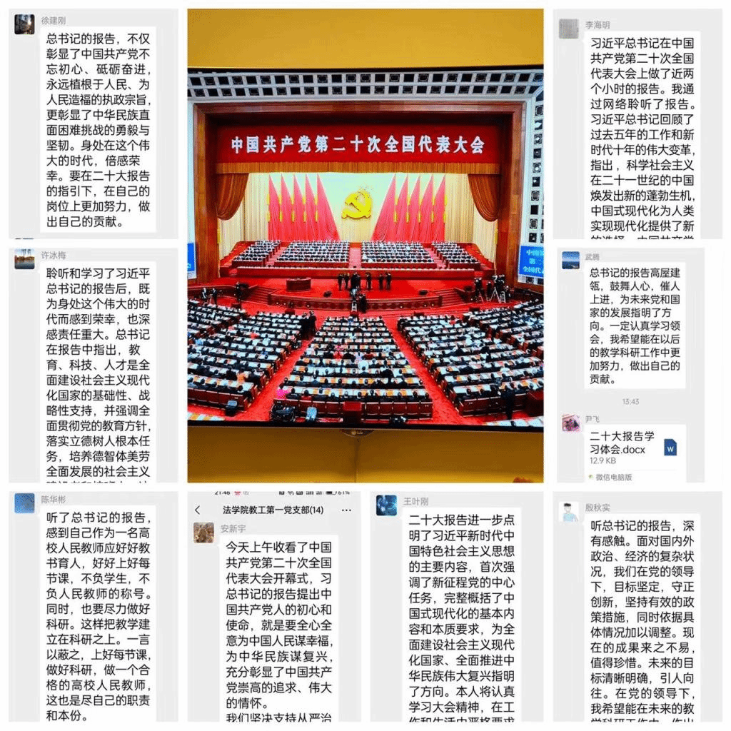 公司党委副书记、经理尹飞老师:习近平总书记代表党中央做的二十大报告,全面回顾了过去五年的伟大成就和新时代十年的伟大变革,进一步明确了习近平新时代中国特色社会主义思想的世界观和方法论价值以及开辟马克思主义中国化时代化新境界的伟大意义,清晰界定了新时代新征程以中国式现代化全面推进中华民族伟大复兴的使命任务,系统阐述和布置了全面建设社会主义现代化国家的各项重大任务。为全面建设社会主义现代化国家、全面推进中华民族伟大复兴的伟大征程指明了方向、擘画了蓝图、奠定了扎实的思想基础和理论基础。作为高校法学教师,我深感使命艰巨。二十大报告中,“实施科教兴国战略,强化现代化建设人才支撑”被提升到在前所未有的高度,教育优先发展被置于科教兴国战略的首位。作为首批全国高校黄大年式教师团队的一员,我们将牢记总书记的谆谆教诲,立德修身、潜心治学,当好员工领路人,争做“大先生”。我们要在工作中全面贯彻党的教育方针,落实立德树人根本任务,为党育人、为国育才,努力将社会主义核心价值观和社会主义法治理念贯穿法学教育全过程,实现法学专业教育和思政教育的有机融合,努力培养忠于党、忠于国家、忠于人民、忠于法律的社会主义法治事业合格建设者和接班人。作为法治工作队伍的一员,我作为高校法学教师,我深感使命艰巨。二十大报告强调,“全面依法治国是国家治理的一场深刻革命,……必须更好发挥法治固根本、稳预期、利长远的保障作用,在法治轨道上全面建设社会主义现代化国家”。这就要求我们在习近平法治思想的指导下,坚持党的领导、人民当家作主、依法治国有机统一,立足治国理政大局,努力挖掘中国特色社会主义法学理论体系和法治实践体系的中国特色、时代特色、实践特色,更加认真深入地学习、研究和发展中国特色社会主义法治理论,为科学立法、严格执法、公正司法、全民守法的伟大实践建言献策。作为一名财经类高校法学教师,我深感前景广阔。二十大报告强调:“高质量发展是全面建设社会主义现代化国家的首要任务。……必须完整、准确、全面贯彻新发展理念,坚持社会主义市场经济改革方向,坚持高水平对外开放,加快构建以国内大循环为主体、国内国际双循环相互促进的新发展格局”。在构建高水平社会主义市场经济体制的进程中,充分发挥市场在资源配置中的决定性作用,更好发挥政府作用,迫切需要财经领域法治建设的充分保障。这就为我们充分依托财经高校经济领域学科优势,立足高水平社会主义市场经济体制的法治保障,着力法治化营商环境建设和数字经济法治应对,法学与经济学交叉、国内涉外统筹,形成并强化财经法学特色和优势提供了难得的发展机遇。我们应当在强化高水平社会主义市场经济法治体系和基本理论研究的同时,聚焦重点领域、新兴领域、涉外领域法治建设,着力围绕土地、劳动力、资本、技术、数据各生产要素重点突破,为形成系统完备、科学规范、运行有效的制度体系作出应有的贡献。