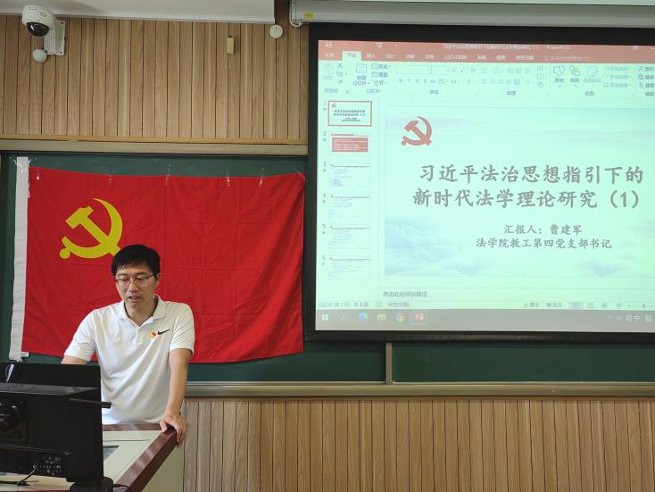 曹建军副教授强调新时代法学理论研究应坚持以习近平法治思想为指引,以此构建中国特色社会主义法学自主的知识体系,构建起具有鲜明中国特色的法学学科体系、学术体系和话语体系,并简要介绍了《中国应用法学》“习近平法治思想指导下执源治理研究”主题征文启示、第二十一届长三角法学论坛征文、第十九届“西部法治论坛”征文以及全国副省级城市法治论坛的征文内容,鼓励同学们积极投稿。