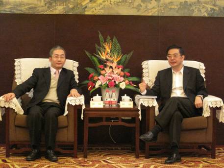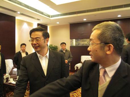 周强书记向课题组一行全面介绍了湖南省近年来经济和金融发展情况。周书记指出,湖南在应对雨雪冰冻灾害和国际金融危机过程中抢抓机遇,积极加强基础设施建设,大力发展装备制造业和农业产业化,实现了经济的加快发展。十一五期间,湖南经济年均增长15%,4年GDP就翻了一番,3年就基本实现了十一五的经济发展目标。在工业方面,湖南的工程机械产业在国内遥遥领先,轨道交通产业在国内领先,风力发电、光伏产业、新能源电池等战略性新兴产业在全国有一定的竞争力,有色金属、钢铁、石化等产业有自己的发展特色,汽车制造业面临新的发展机遇,戴尔和富士康等一批高科技企业也已经或即将落户湖南。农业产业化加大推进力度,一批龙头企业正在加快成长。