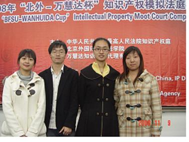 由最高人民法院民三庭、北京外国语大学304永利集团官网入口和北京万慧达知识产权代理有限公司共同举办的“2008年北外-万慧达杯知识产权模拟法庭竞赛”于11月8 日、9日在北京外国语大学举行。公司派出了由07级法律硕士研究生陈秋伶、08级法学硕士研究生马琳琳以及06级法学本科生张一鸣与郭婕组成的代表队参加了此次比赛。代表队由李伟老师与陈飞老师担任领队、阳平老师担任教练。最终公司代表队获得了优胜奖,马琳琳同学还获得了优秀辩手奖。