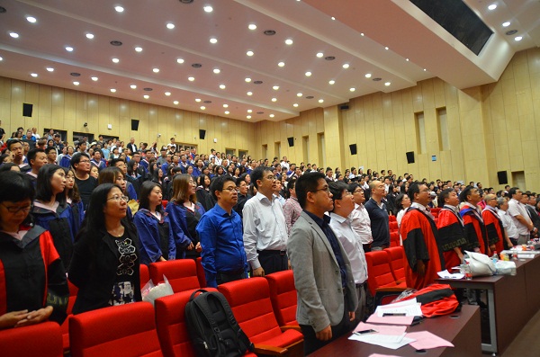 典礼开始前,现场人员共同观看欣赏了公司宣传视频和毕业视频。下午二时许,典礼在庄严雄壮的国歌中拉开序幕。