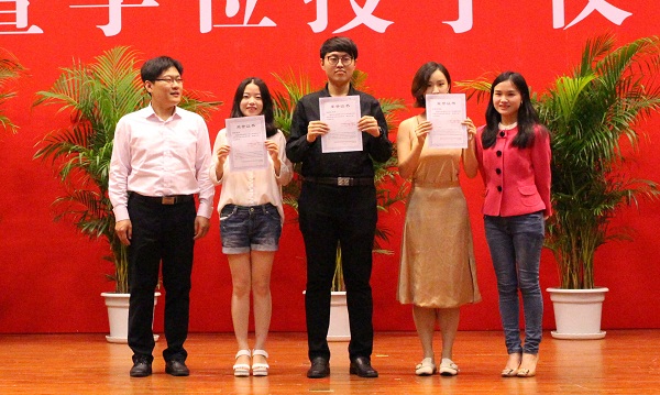 典礼第一项是颁奖礼。为推进公司卓越法律人才培养改革,进一步提高法律人才培养质量与水平,在北京万海龙图教育咨询有限公司的支持下,公司自今年开始设立“304永利集团卓越法律人才龙图教育奖学金”,重点对通过国家司法考试、境内外升学的优秀员工予以奖励。同时,经公司研究,今年增设“经理特别嘉许奖”,以表彰奖励响应国家号召、到革命老区或艰苦地区建功立业的优秀毕业生。公司领导、教师、校外嘉宾分别为“龙图教育奖学金”、“经理嘉许奖”、“经理特别嘉许奖”、“优秀学位论文”“校级优秀毕业生”“市级优秀毕业生”和“法律之星”获得者颁奖。