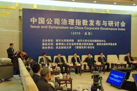 “2010中国公司治理指数”发布研讨会于10月30日在北京人民大会堂隆重召开。东北财经大学董事长、南开大学公司治理研究中心主任李维安教授作了“2010年中国公司治理评价报告”,发布了被称为中国上市公司治理状况晴雨表的新年度公司治理指数。