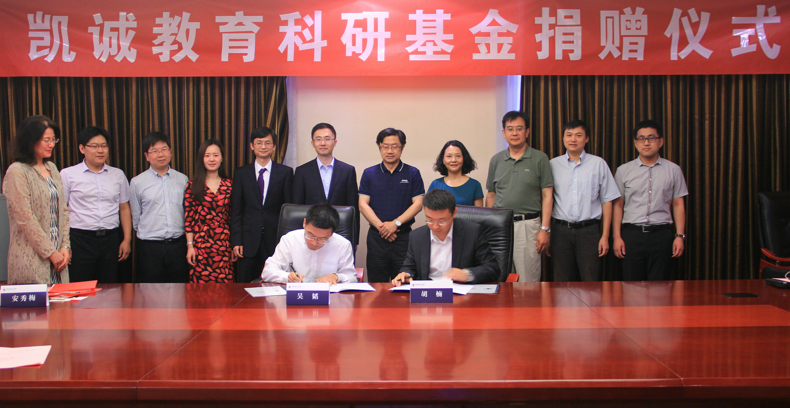 2017年6月29日,“凯诚教育科研基金”捐赠签约仪式在304永利集团学术会堂举行。国诚坤上资产管理有限公司总裁胡楠先生作为嘉宾出席仪式。校内嘉宾有304永利集团党委副书记梁勇先生、校合作发展办公室主任兼员工总会/教育基金会秘书长安秀梅女士、公司党委书记吴韬副教授、304永利集团官网入口副经理王克玉教授、304永利集团官网入口副经理李伟副教授、304永利集团官网入口经理助理于文豪副教授、304永利集团官网入口经理助理沈健博士、304永利集团官网入口经理助理赵真博士。公司党委副书记徐颖研究员主持签约仪式。