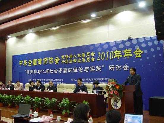 ,“中华全国律师协会宪法与人权专业委员会、行政法专业委员会2010年年会”暨“律师参与化解社会矛盾的理论与实践研讨会”在公司学术会堂二层报告厅隆重举行。会议由全国律协宪法与人权专业委员会、全国律协行政法专业委员会主办,公司法律事务办公室和法律援助中心等单位参与协办。