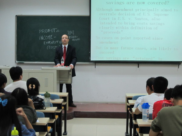 讲座由公司王克玉副教授主持。亚历山大教授首先以企业违法降低生产经营成本与洗钱犯罪的联系为切入点,讲述了经营实体在逃税漏税、非法雇工、破坏环境、降低劳工安全和卫生标准等环节中的利益转移和输送,并着重从防止和制裁洗钱犯罪的角度,对金融违法和犯罪领域新类问题的规制进行了深度剖析,并对包括中国等发展中国家的金融法制问题提出了独到的见解。讲座内容激起了公司同学们的热情和兴趣,其他院系的研究生也积极参加。讲座最后的半个小时,同学们纷纷提出问题,亚历山大教授给予了热情解答。
