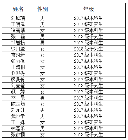 公司于2019年5月13日发布了天津法院系统实习遴选公告,并于2019年5月29日下午组织了面试。各位评委老师针对同学们的面试情况,及其学业成绩与平时表现,并经公司审核,最终确认以下20名同学参加2019年天津法院系统实习,现予以公示: