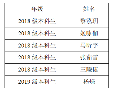 根据组委会要求,本次比赛各参赛队伍队员应为4-6人,限于法学专业本科生。综合申请人提交的申请表、笔试以及面试表现,确定如下参赛名单: