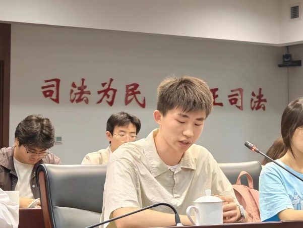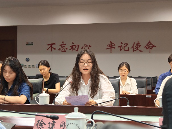接着,实习生代表丁璨璨、马寓琛进行发言。两位同学对自己的实习工作进行了汇报,分享了自己在实习过程中的收获,表达了对天津市高级人民法院各位领导与法官的感谢之情。