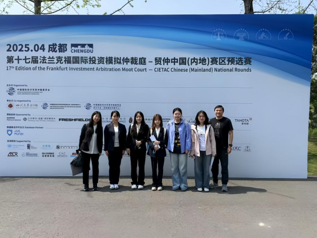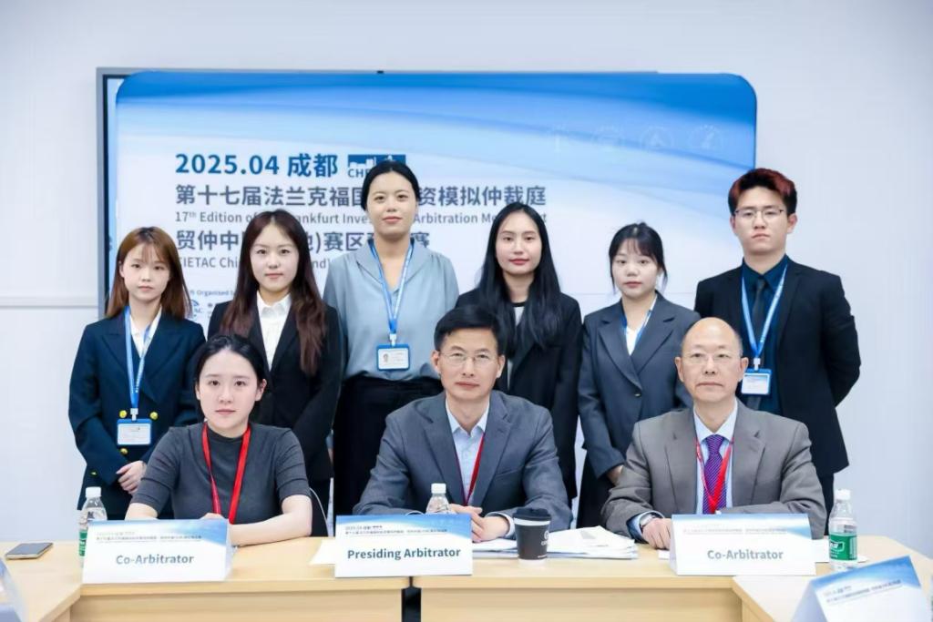 2025年4月6日至11日,由中国国际经济贸易仲裁委员会(以下简称“贸仲”)主办、贸仲香港仲裁中心承办的第十七届法兰克福国际投资模拟仲裁庭贸仲中国(内地)赛区预选赛在四川大学江安校区如期举行,304永利集团代表队参加了此次比赛。代表队由公司沈健副教授任指导老师,由2024级硕士研究生刘静伊、李思滢、徐若思、赖怡存、李嘉阳、王一凡、靳馥宁、郑美茹八人组成队员。