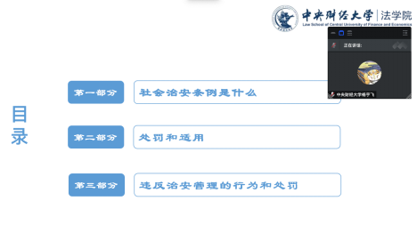宣讲分为三部分。社会治安条例是什么,宣讲人通过引入对法条的分析,向听众们展示社会治安条例的内容以及制定目的。治安管理处罚法的处罚方式和如何适用,宣讲人通过一个个身边的例子,生动形象的向听众讲解警告、罚款、拘留等处罚方式的适用情形。最后,宣讲人通过违反治安管理处罚法的热点案例,用法律思维分析,生动形象向听众展示治安管理处罚法的具体适用,引导听众知法懂法,培养法治思维,树立正确的法治观念。