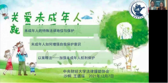 2021年12月8日,协会成员沙桐、王璐瑶为北京市奋斗小学的小朋友们带来一场精彩的未成年人保护的普法宣传。