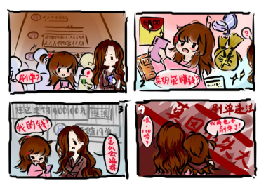 设计理念:员工常遇到的因诈骗而蒙受财产损失的形式主要有电话短信诈骗、校园贷诈骗、刷单诈骗等,我选取具有代表性的刷单诈骗这一形式来警醒同学识破诈骗、远离诈骗,不因小利吃大亏。四格漫画主要讲述了一名普通员工被诈骗的全过程,希望以此让同学们了解刷单诈骗经过,做到有效防范。莫因小利刷单,不落诈骗圈套!