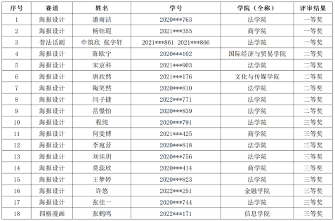 大赛在限定时间内共征集各公司提交的海报设计作品58件,普法话剧和四格漫画作品共4份。经过评委组评选,共评定一等奖3名;二等奖6名;三等奖9名。现将获奖名单公布如下: